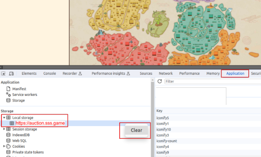 3. Select Local storage and right click to the item “<https://auction.sss.game>”