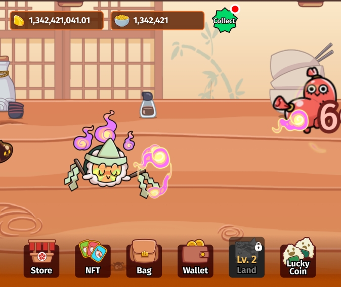 After the first 'Harvest' is completed, players can start to 'Collect', which moves the Harvested Rice Fragments to the Rice Bag.