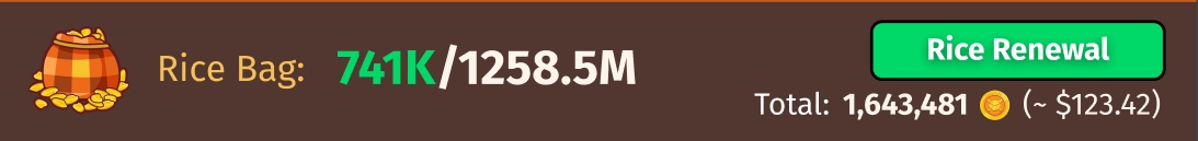 When a player does Rice Renewal, his Rice Bag resets to zero, and the total supply of Rice decreases. This way, the remaining players get more future rewards.