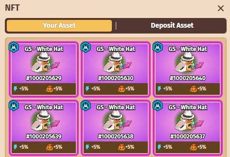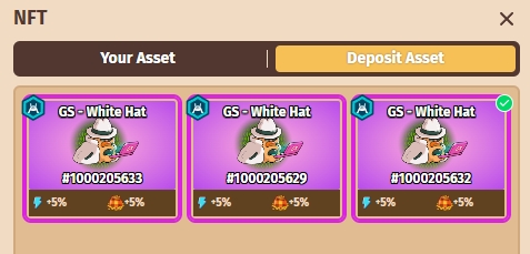Any NFT Skin in the 'Deposit Asset' tab has active benefits.
