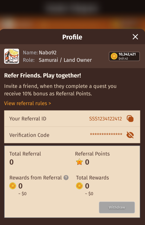 When a player completes a quest, 10% bonus as referral points is given to the Referrer